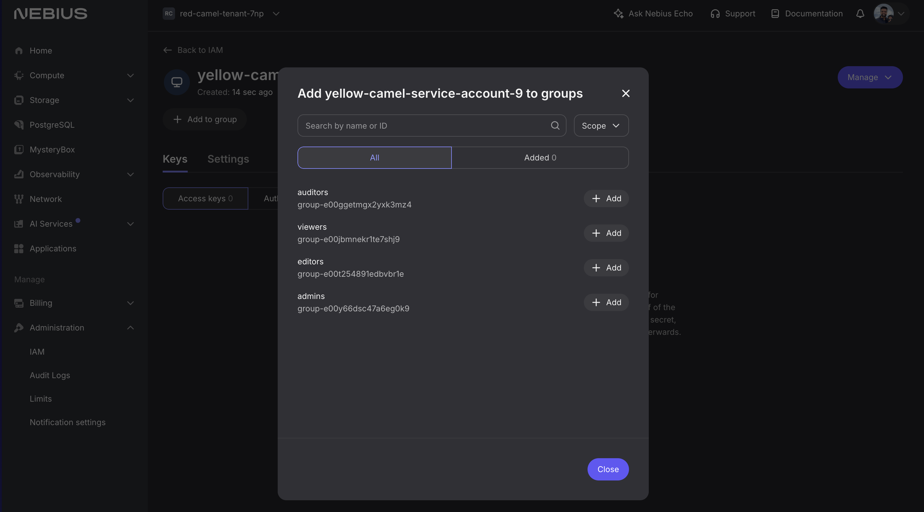 Repeat this process for every Nebius project that you want to enable as a binding.